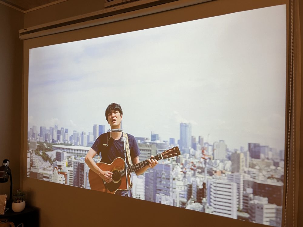 壁に投影することも可能ですが、スクリーンを使うことで光の拡散を抑え、クリアな映像を楽しむことができます。